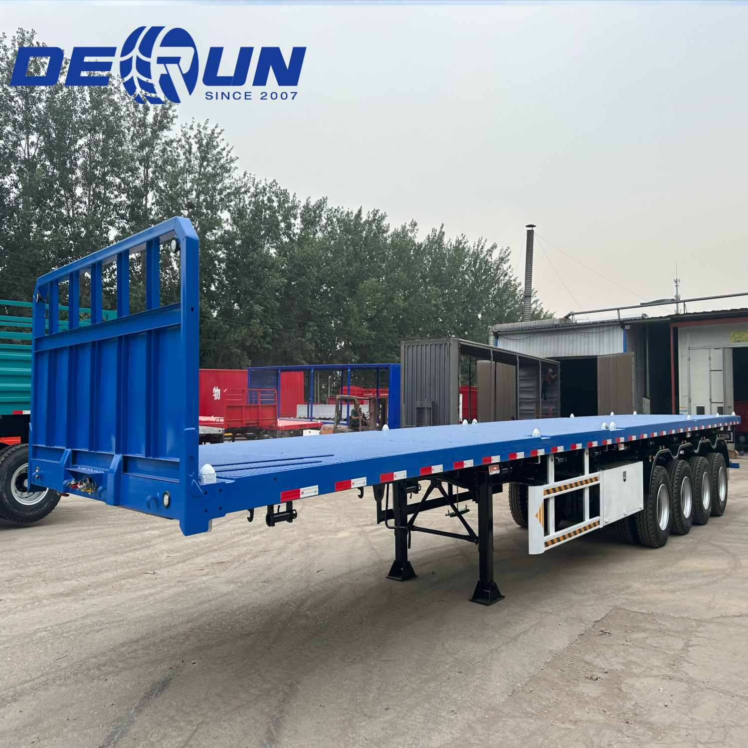 4軸のフラットベッドセミトレーラーの場合、さまざまな重い貨物輸送に適した、一種の高性能で高速容量のトレーラーです。 4つの車軸フラットベッドセミトレーレは、フレームを製造するために高強度鋼を採用し、縦方向のビームとクロスビームを溶接して固体スペースフレーム構造を形成し、高い負荷を負担する容量を保証します。そのサスペンションシステムは、高強度と耐衝撃性を備えた非独立したスチールプレートスプリングサスペンションであり、タイヤの負荷容量を効果的に減らすことができます。同時に、運転の安全性を確保するために、デュアルサーキットエアブレーキシステムとオプションのABSアンチロックブレーキシステムが装備されています。 4軸のフラットベッドセミトレーラーは、建設、鉱業、物流、その他の産業に適しており、掘削機、ブルドーザー、クレーンなど、あらゆる種類の大型機器、および鉱石や石炭などの重いバルク貨物を輸送できます。
